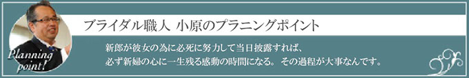 新郎の気持ちに火をつけて、新郎 一磨さんと小原はコッソリと打ち合わせを繰り返し、出した結論。
