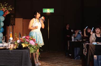 2ヶ月近い製作期間で衣装は完成、コミケ好きな新婦と製作者が意気投合して生地から買い付けに同行して細部まで再現したようです。こんなにこだわったのに直接製作で金額も予定よりかなりリーズナブルとなりました。そして当日、友人の応援の中、会場はまるでステージのようにサイリュームの中、新婦の夢の時間となりました。